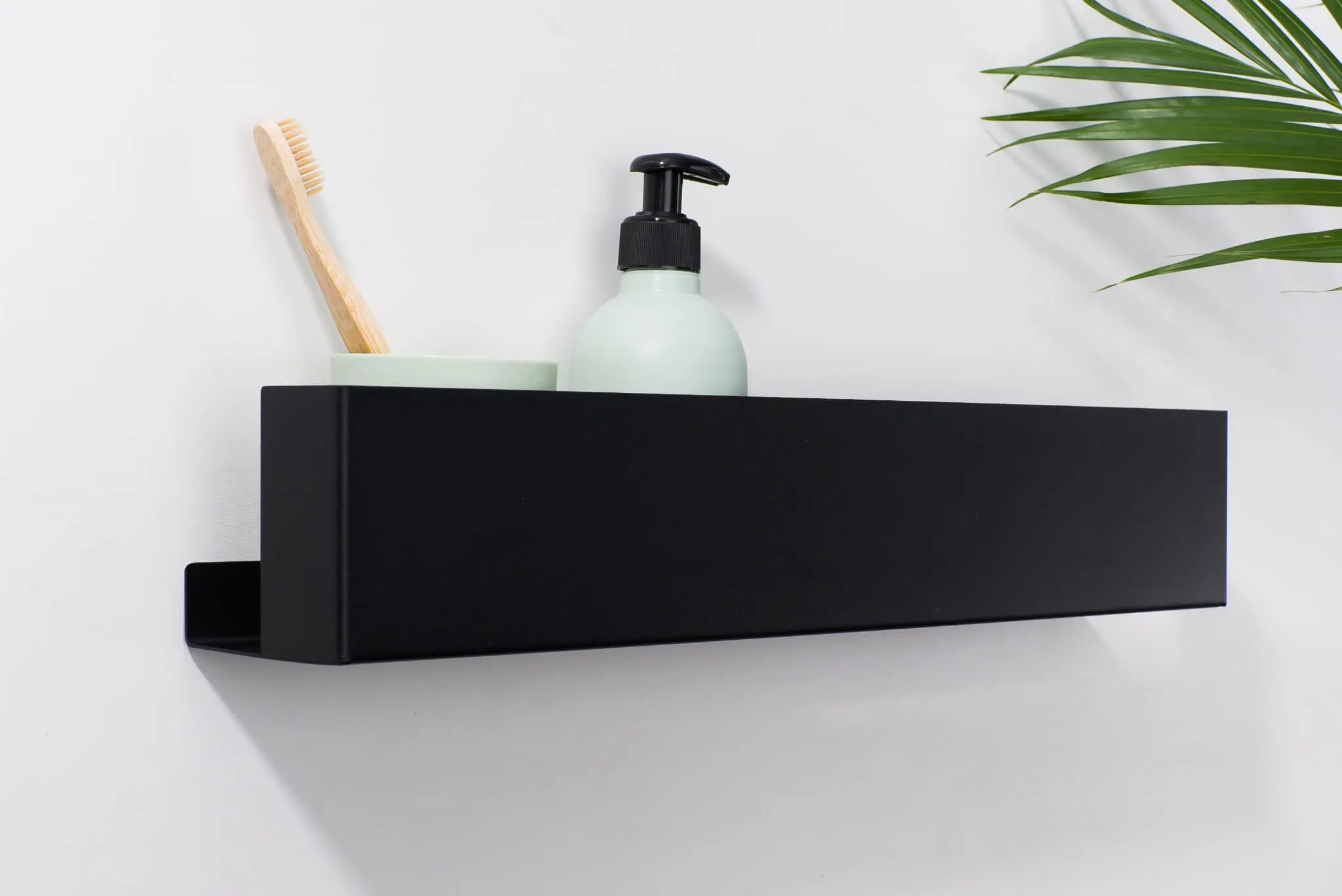 Półka Bain łączy styl z funkcjonalnością – wykonana z giętego metalu i proszkowo malowana, utrzymuje porządek w akcesoriach kąpielowych, dodając nowoczesnego charakteru każdej łazience.