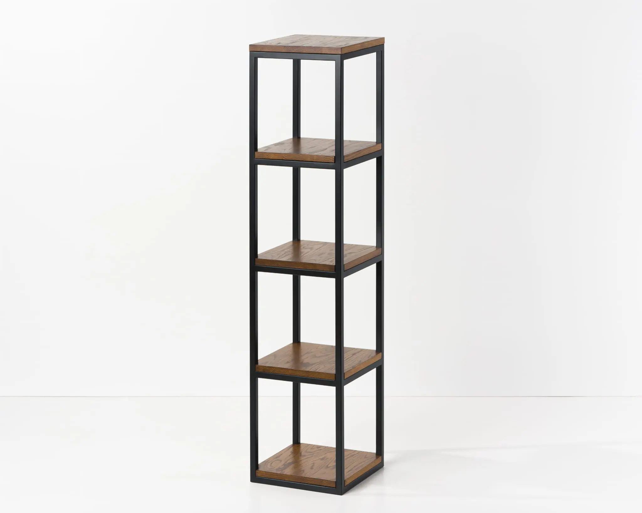 Teo to stylowa kolumna łazienkowa łącząca drewno naturalnego dębu z metalem, idealna do loftowych wnętrz. Oferuje dużo miejsca do przechowywania oraz elastyczne opcje ustawienia – dostępna w kolorze czarnym lub białym z wykończeniami półek z dębu, stanowi doskonałe połączenie funkcjonalności i elegancji.