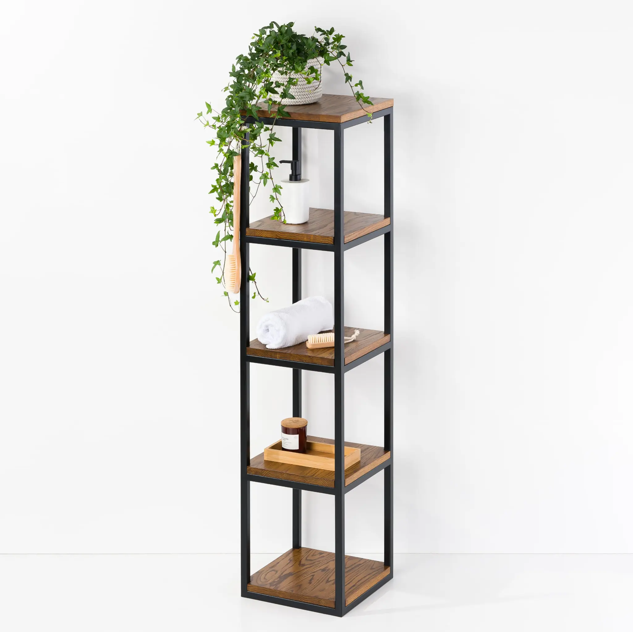 Przedstawiamy “Teo” – idealny dodatek dla miłośników loftowych aranżacji łazienkowych. Ta elegancka, nowoczesna kolumna łazienkowa łączy w sobie urok naturalnego drewna z industrialną surowością metalu, tworząc ponadczasowy element, który będzie Ci służył przez lata. Dzięki przestronnej konstrukcji, Teo oferuje dużo miejsca do przechowywania – możesz w nim zorganizować kosmetyki, ręczniki, a nawet umieścić ozdobne rośliny, podkreślając wyjątkowy charakter Twojej łazienki.
